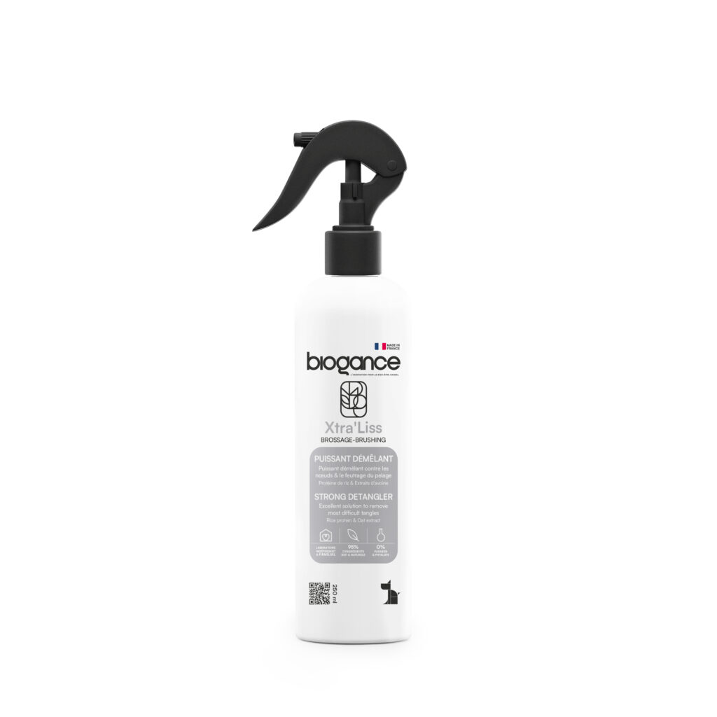 Antiflokespray for å fjerne klumper og floker fra hundens pels.