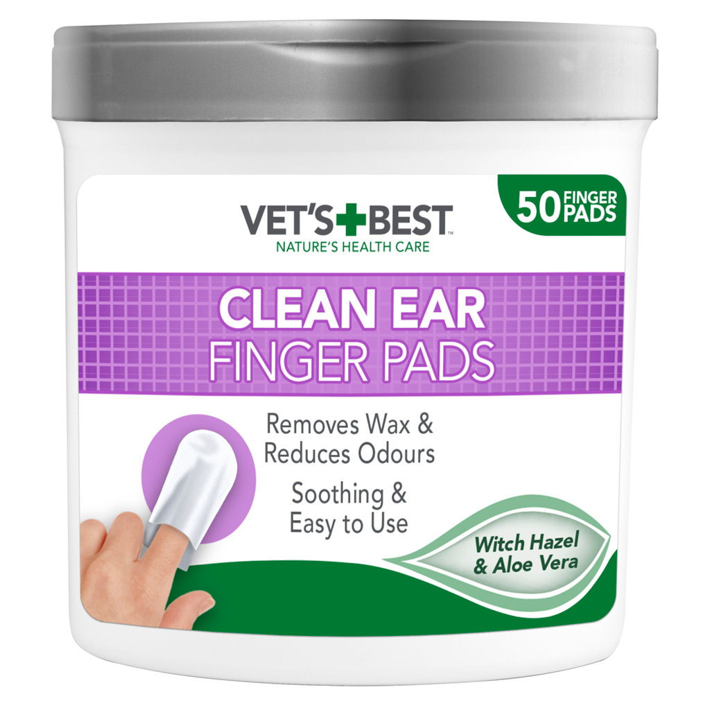 Praktiske våtserviett fingerkluter for enkel rengjøring av ørene til hunden din. Fjerner ørevoks og motvirker vond lukt, kløe og irritasjon forårsaket av oppsamling av ørevoks. Boks med 50 stk.