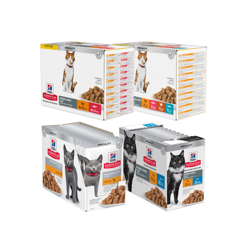 Både til kattunge, voksen og senior. Et komplett våtfôr for steriliserte katter som støtter immunforsvaret, urinveishelse og en aktiv livsstil.