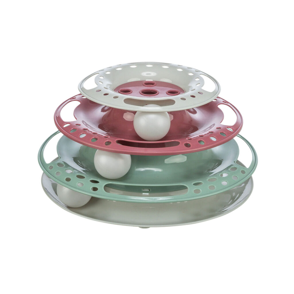 Interaktivt leketårn for katter med fargerike baller på flere nivåer. Stimulerer jaktinstinktet og gir både mental og fysisk aktivitet. Størrelse: 25 cm.